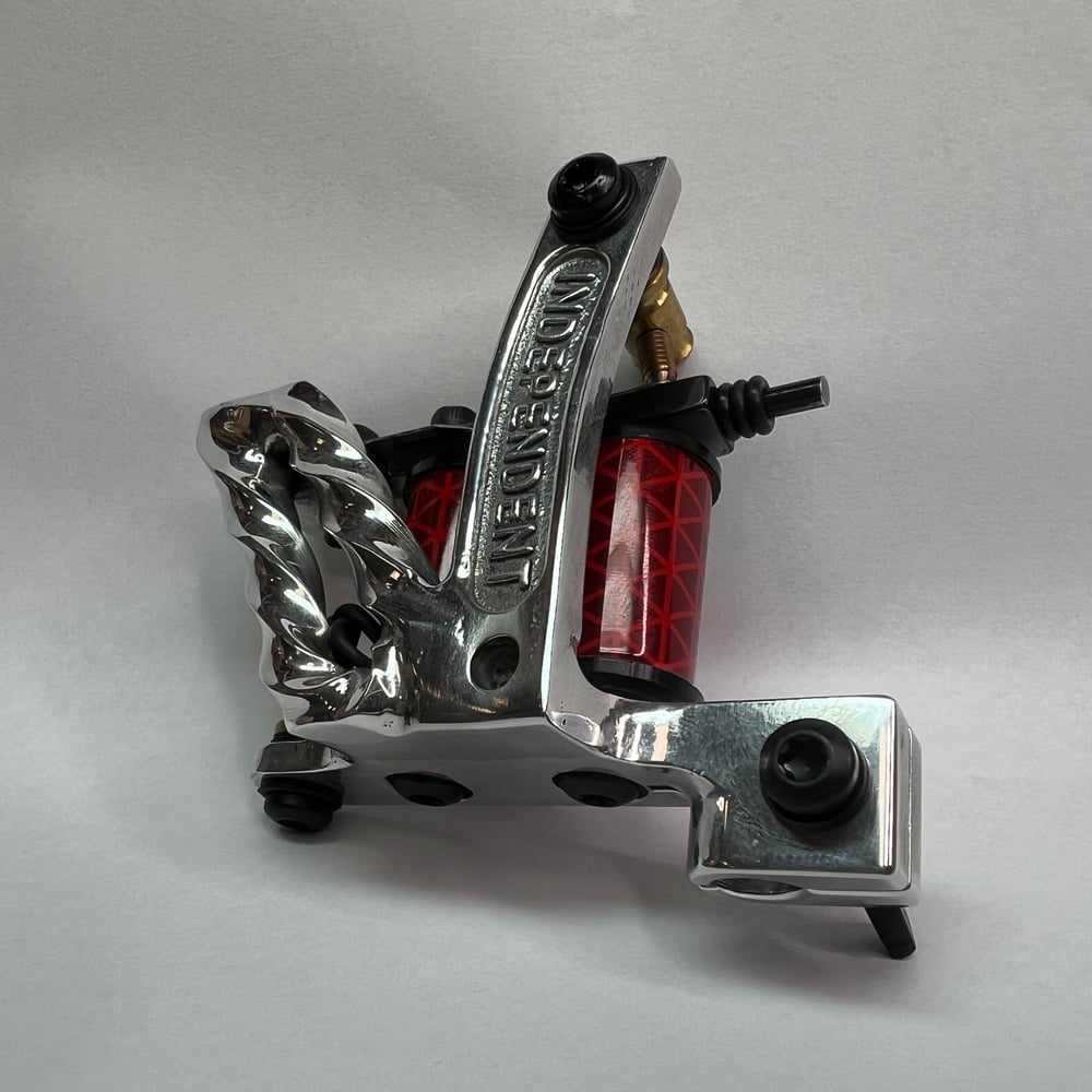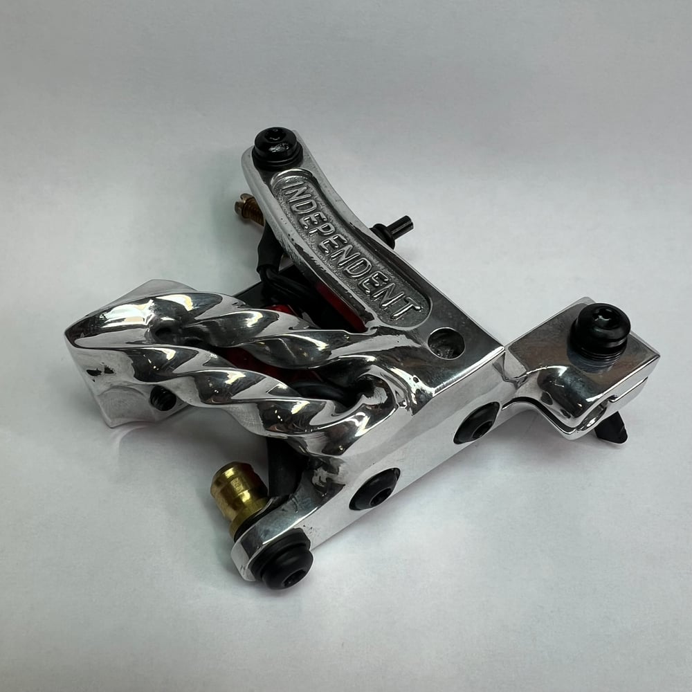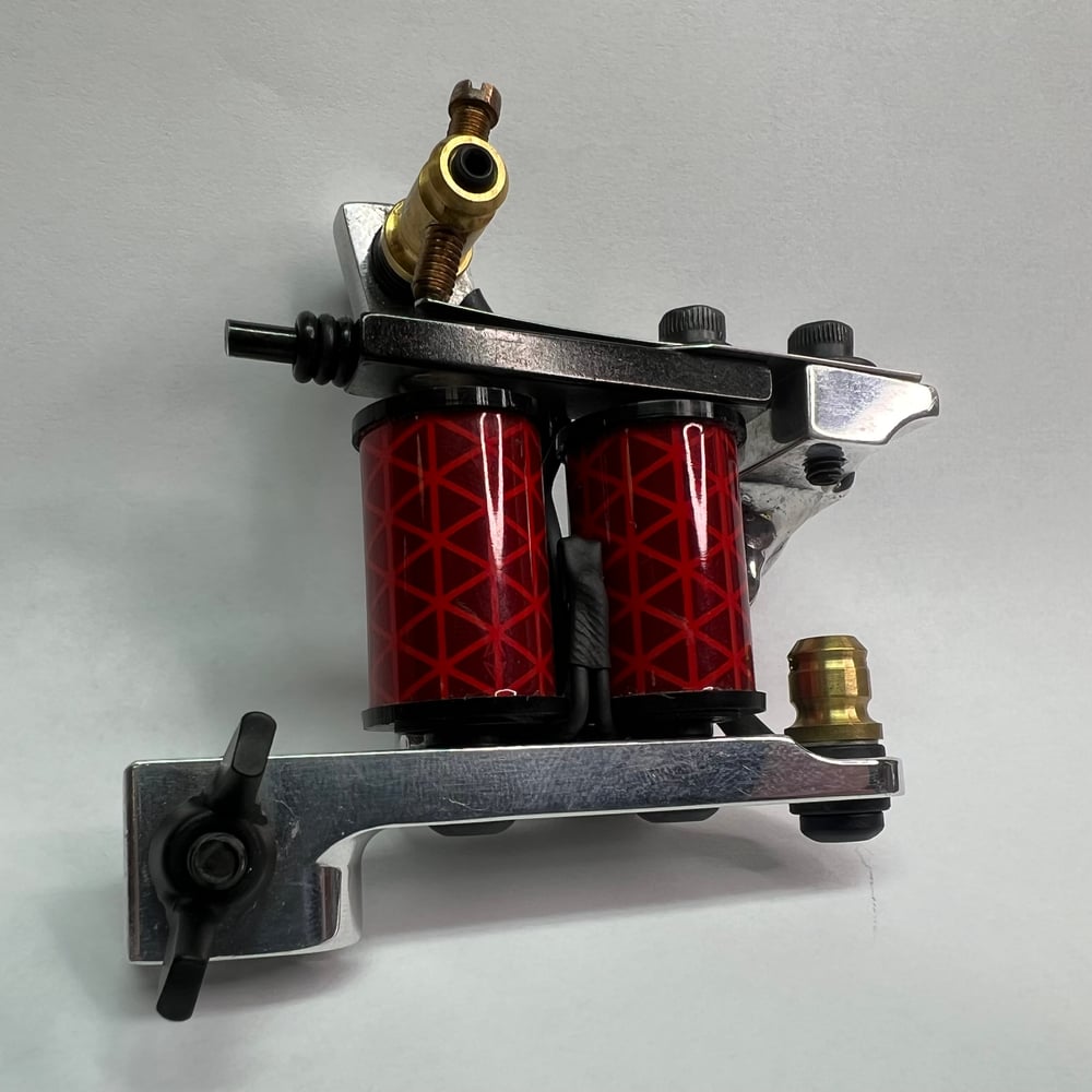 Twisted square stock independent liner. This machine has a nice solid hit with a solid throw. It’s best with daily driver groupings 3-11L and runs 120 CPS at 5 V. This machine is well broken in with a visible sweet spot and ready to work